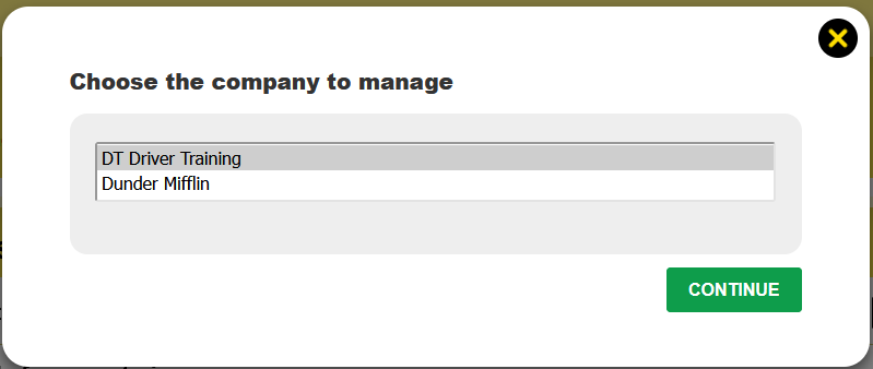 If you have multiple companies that you are managing, you will get a pop-up window when you log in so that you can choose which company you want to manage.