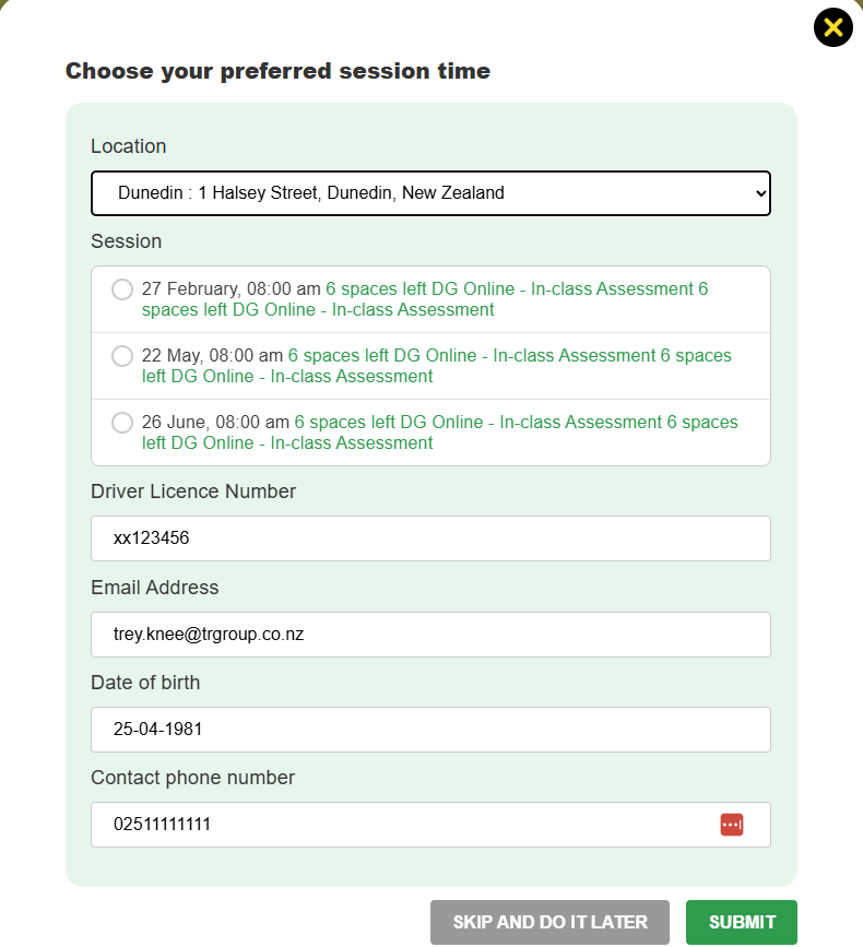 When you finish your course it will prompt you with a form (similar to the one below). If you don't know the details, you can skip and do it later using this form.