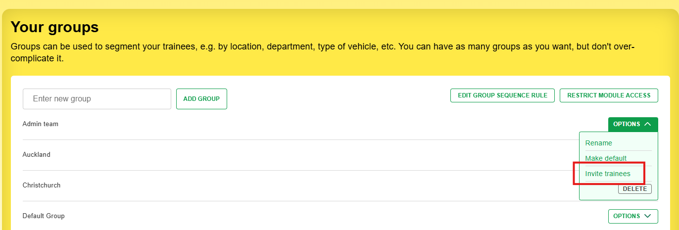From the Options menu, choose Invite trainees.